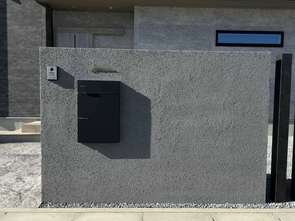 また、塗り壁門柱は、左官技術によって個性的な表情を生み出し、オリジナリティあふれる空間に仕上がっています。