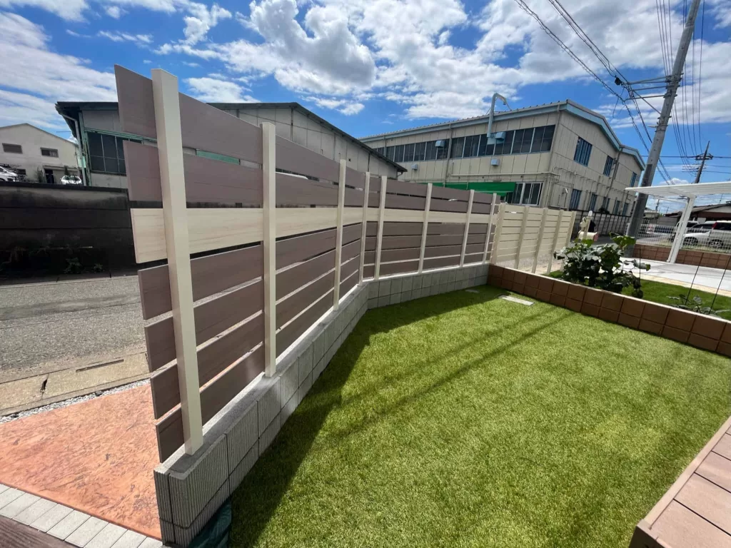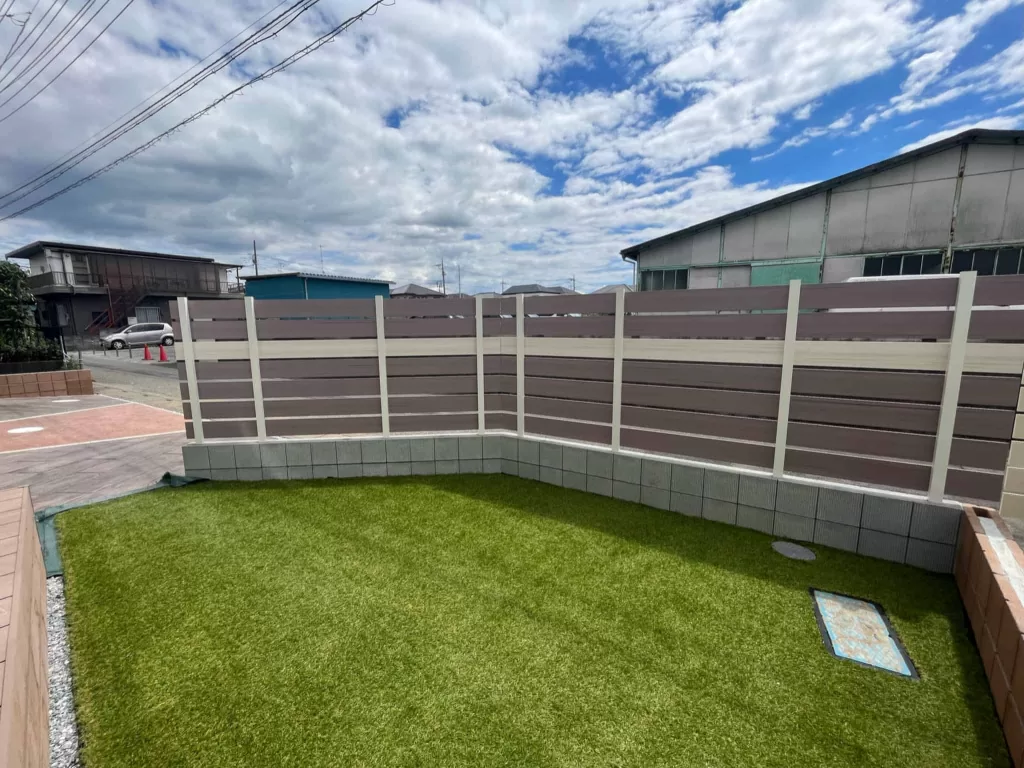 オリジナルデザイン!くすみピンクのフェンスがあるお庭