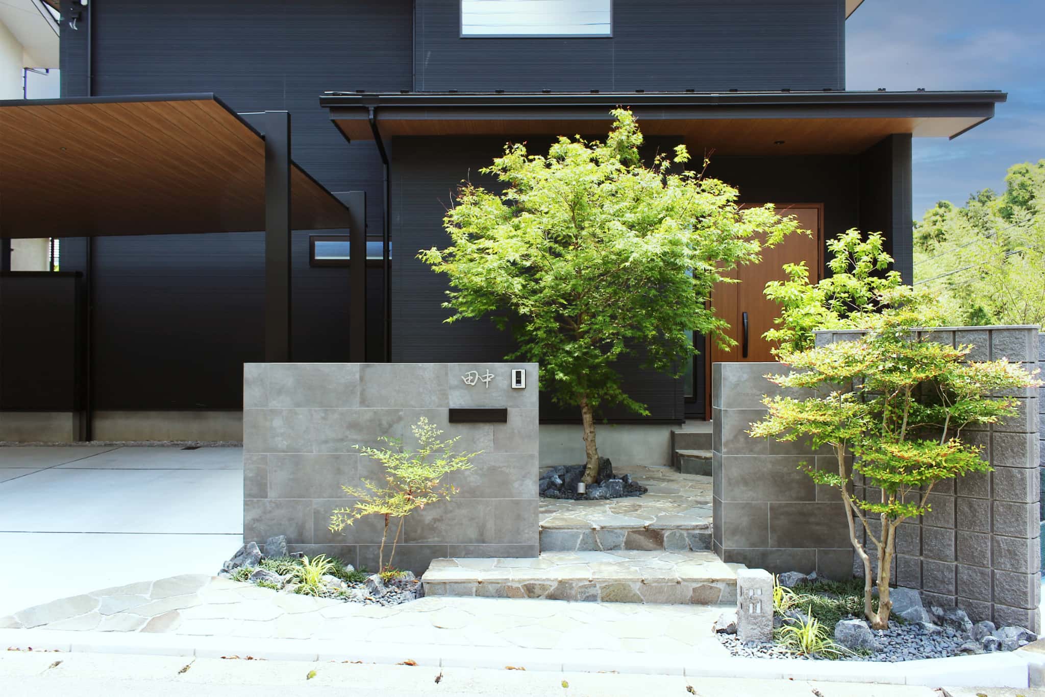 木彫色の色合いは和モダンのエクステリアとも調和し美しい仕上がりとなりました。