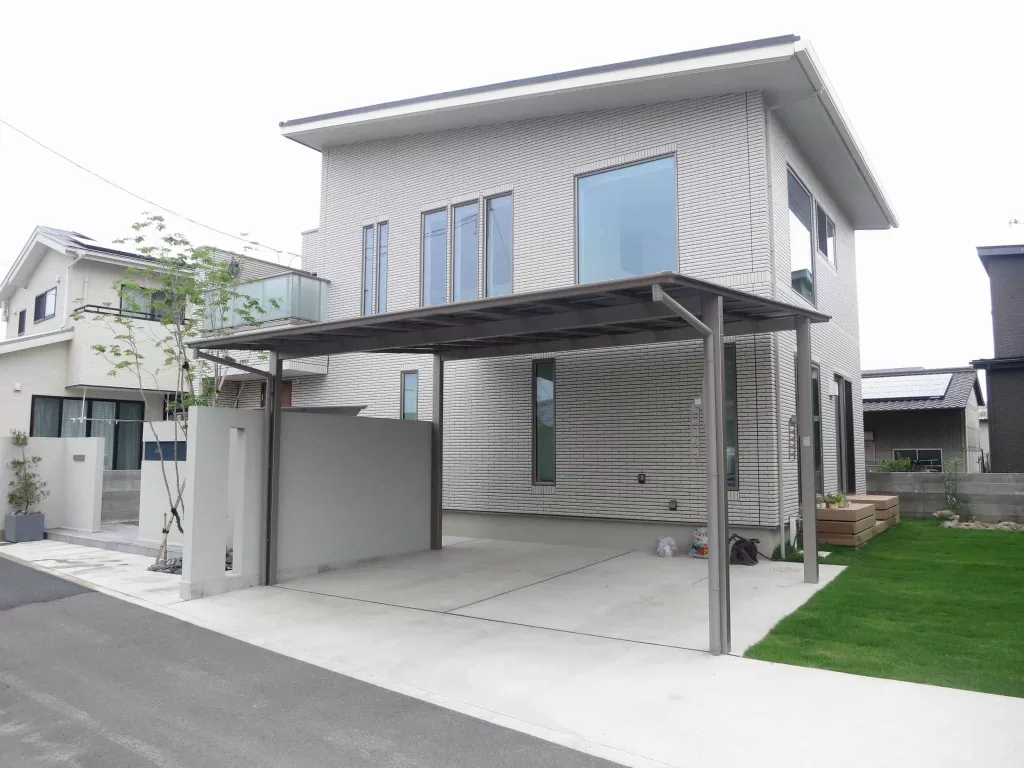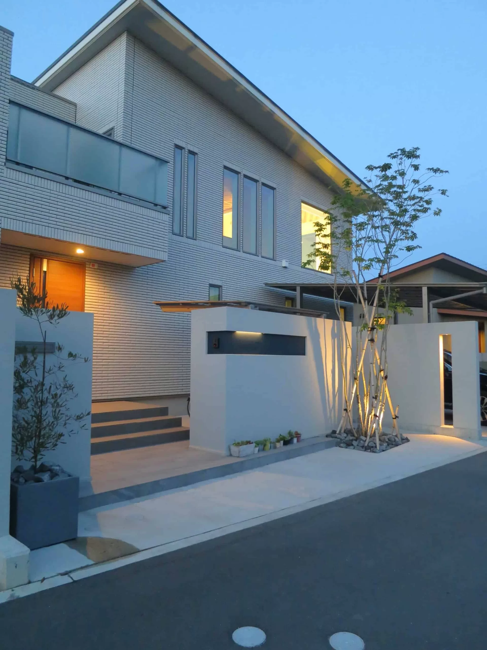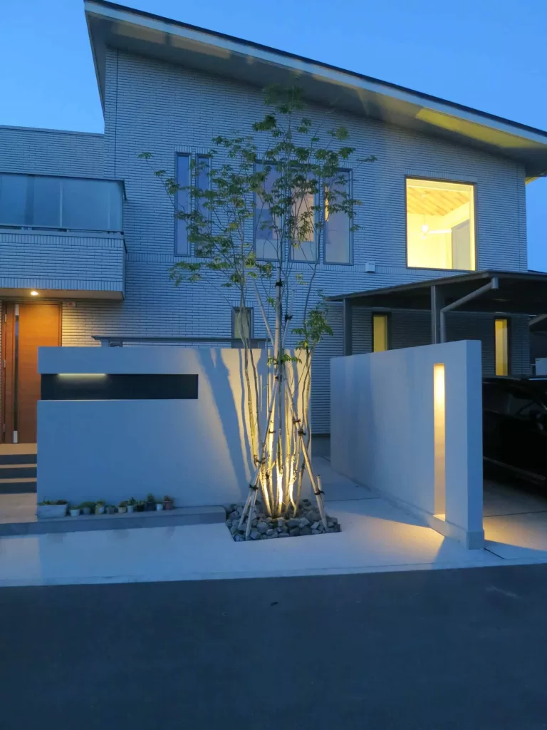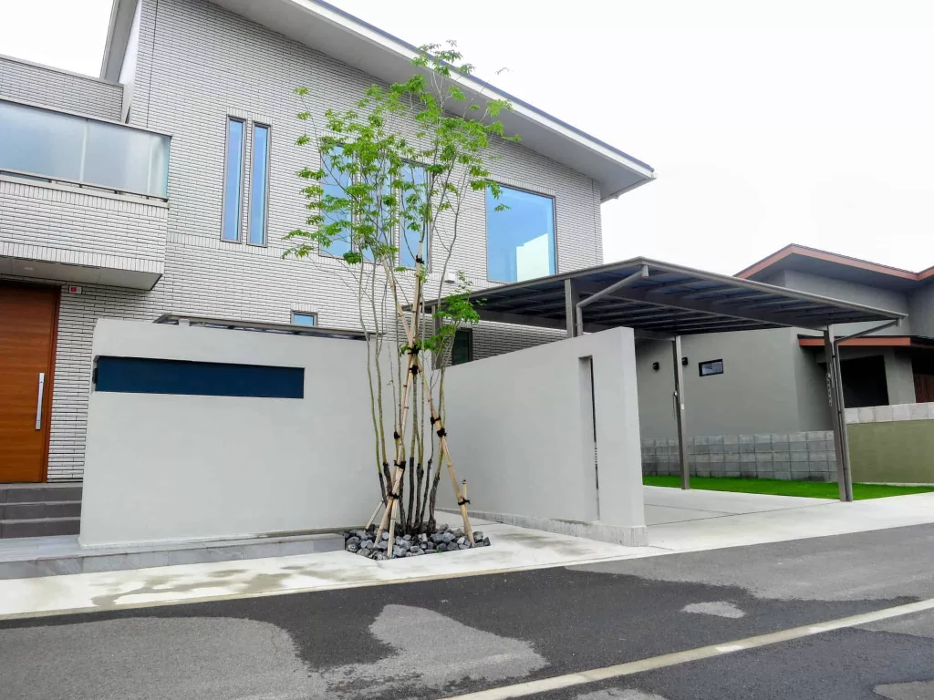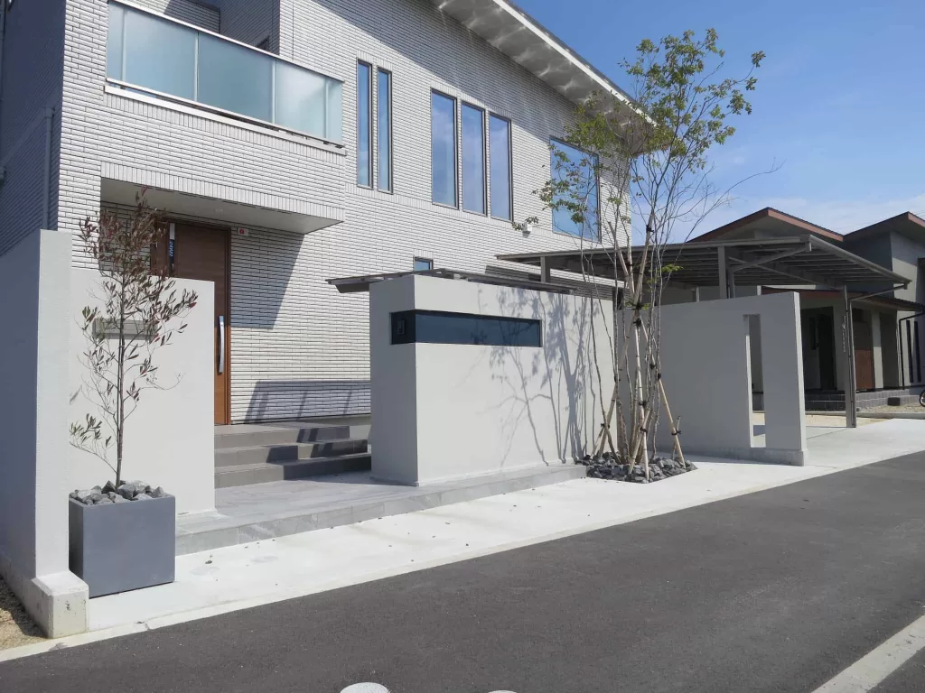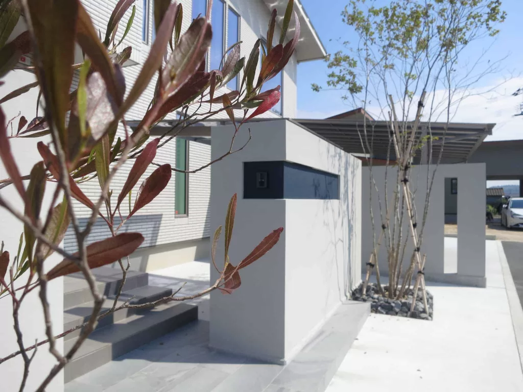 門柱を道路から少しセットバックすることで、エントランス空間に余裕をもたらします。