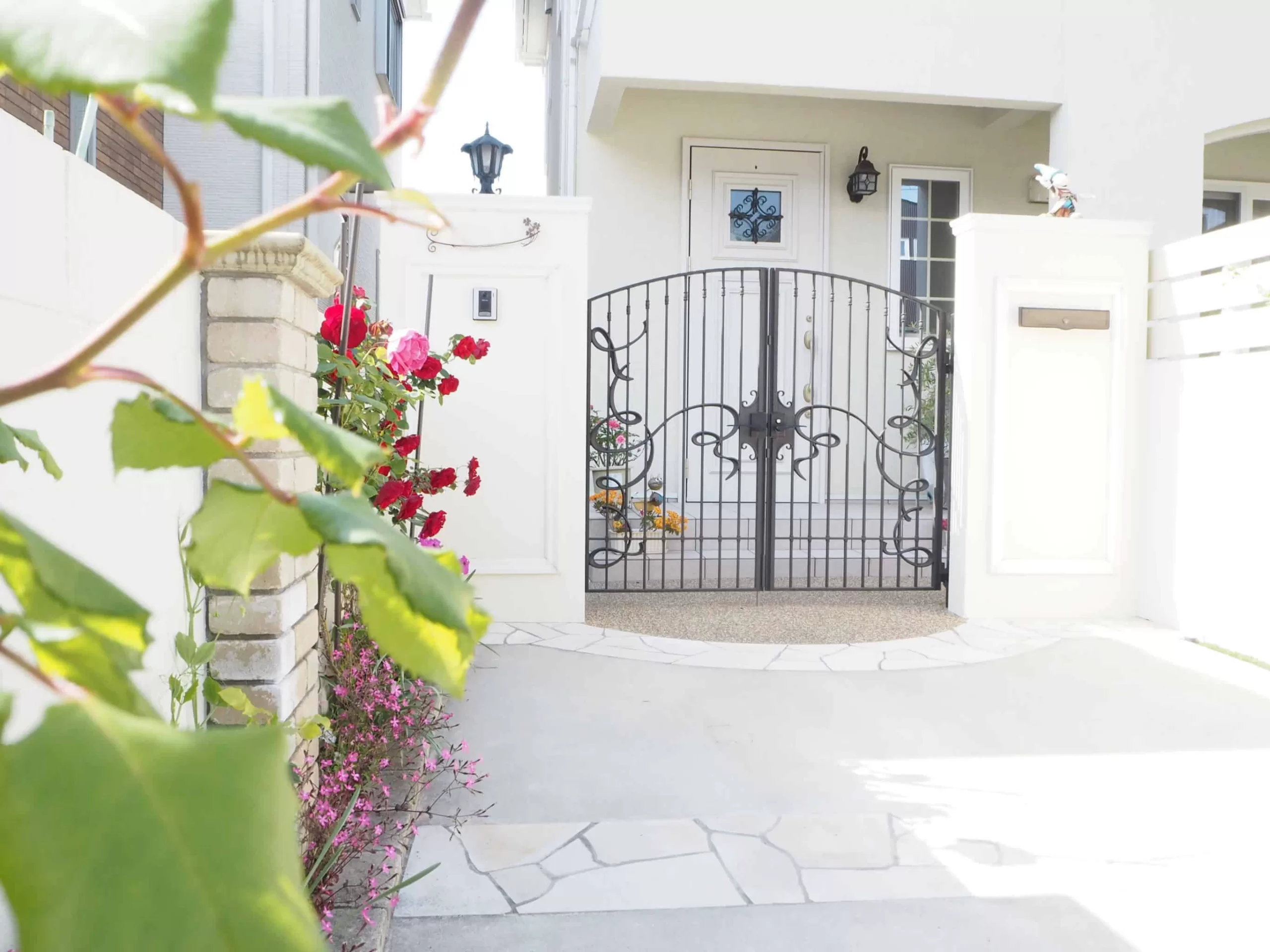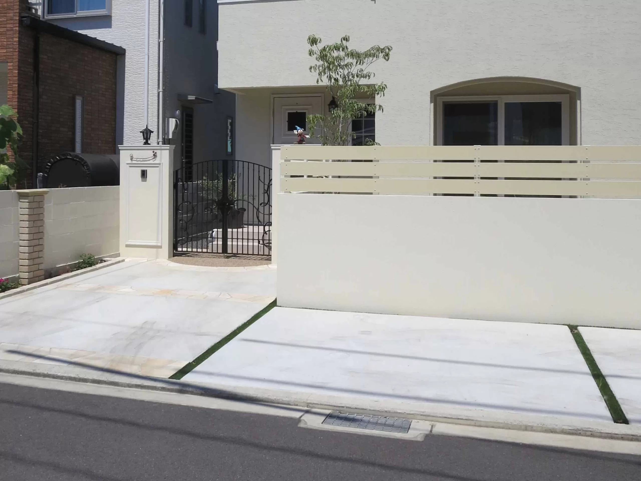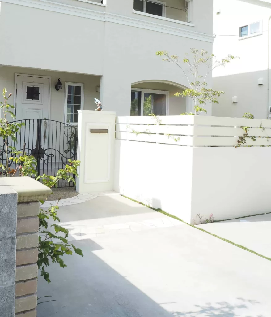 駐車場兼アプローチはスペース全体の空間が生きるように、アプローチの区切りのラインはとらず、広がりを持たせました。