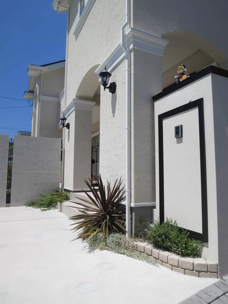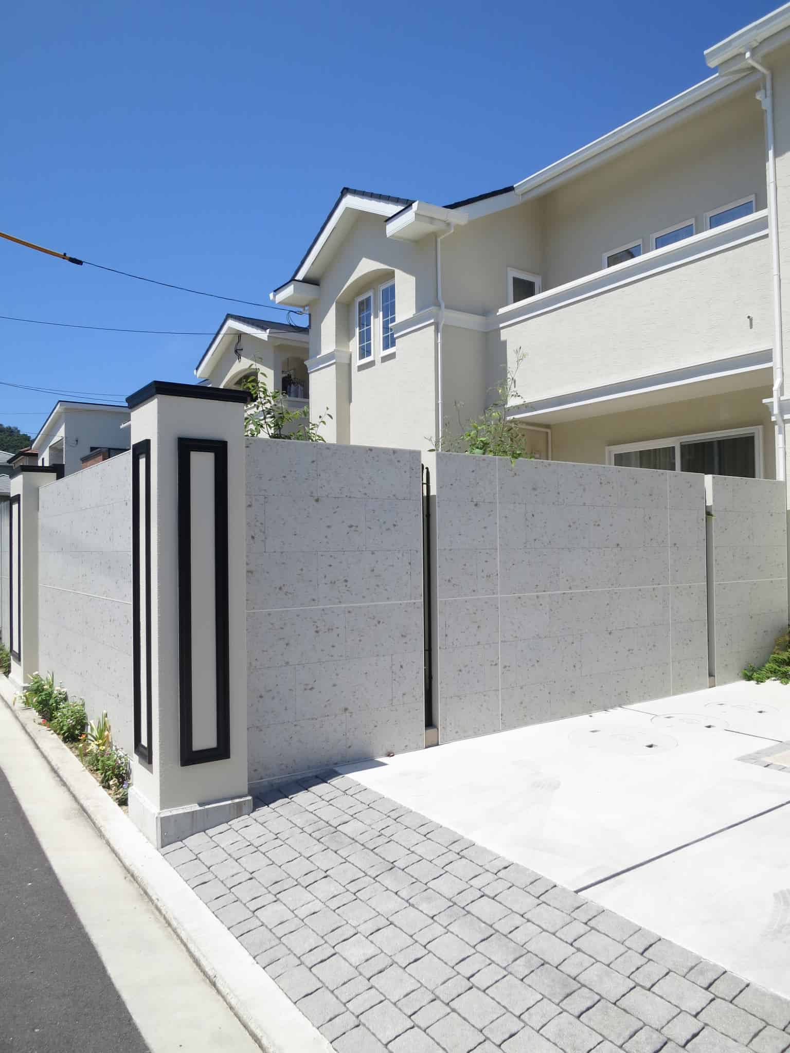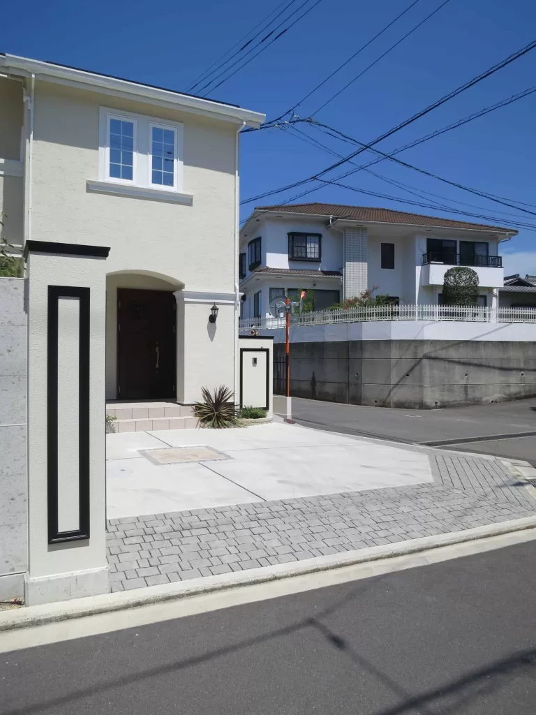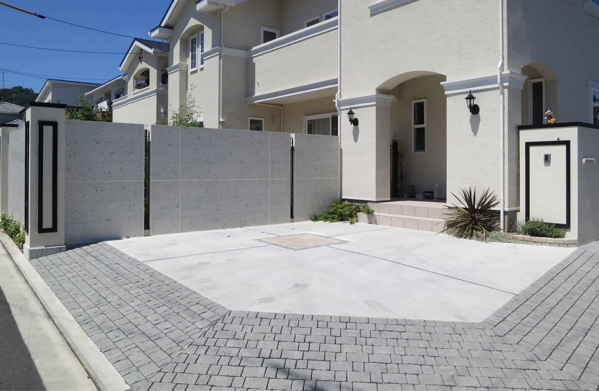 駐車場兼アプローチはスペース全体の空間が生きるように、アプローチの区切りのラインはとらず広がりを持たせました。