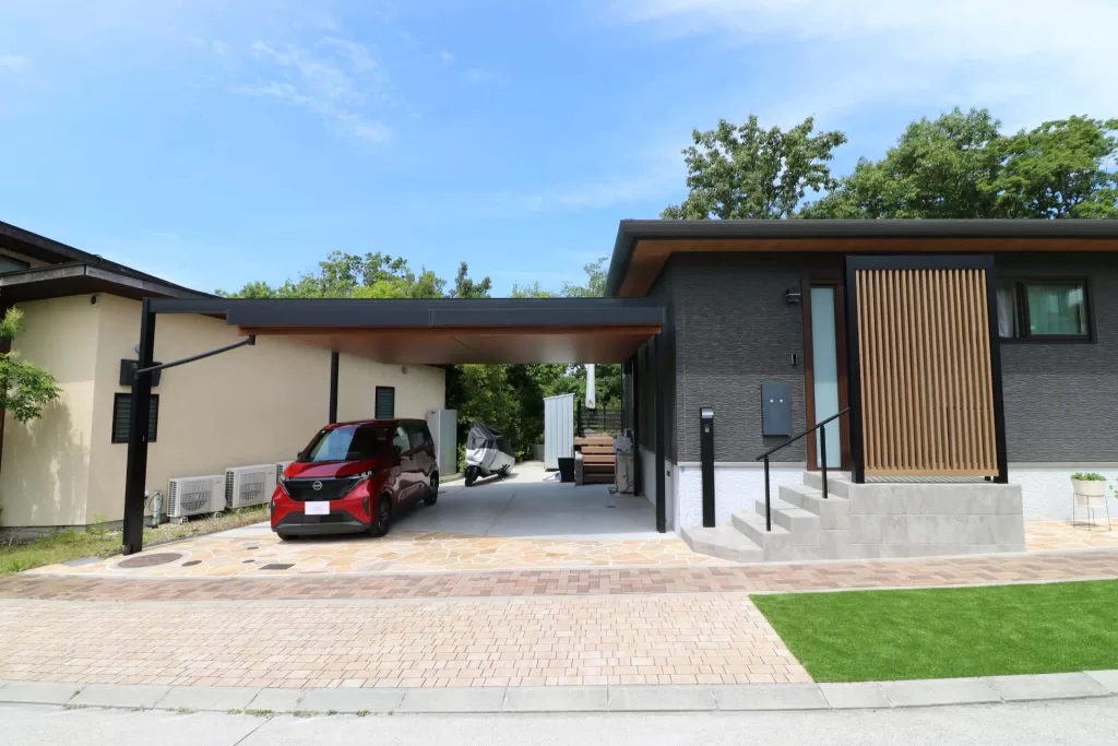 3台用の駐車スペースには吊り下げタイプの U スタイルアゼストを新設しました。