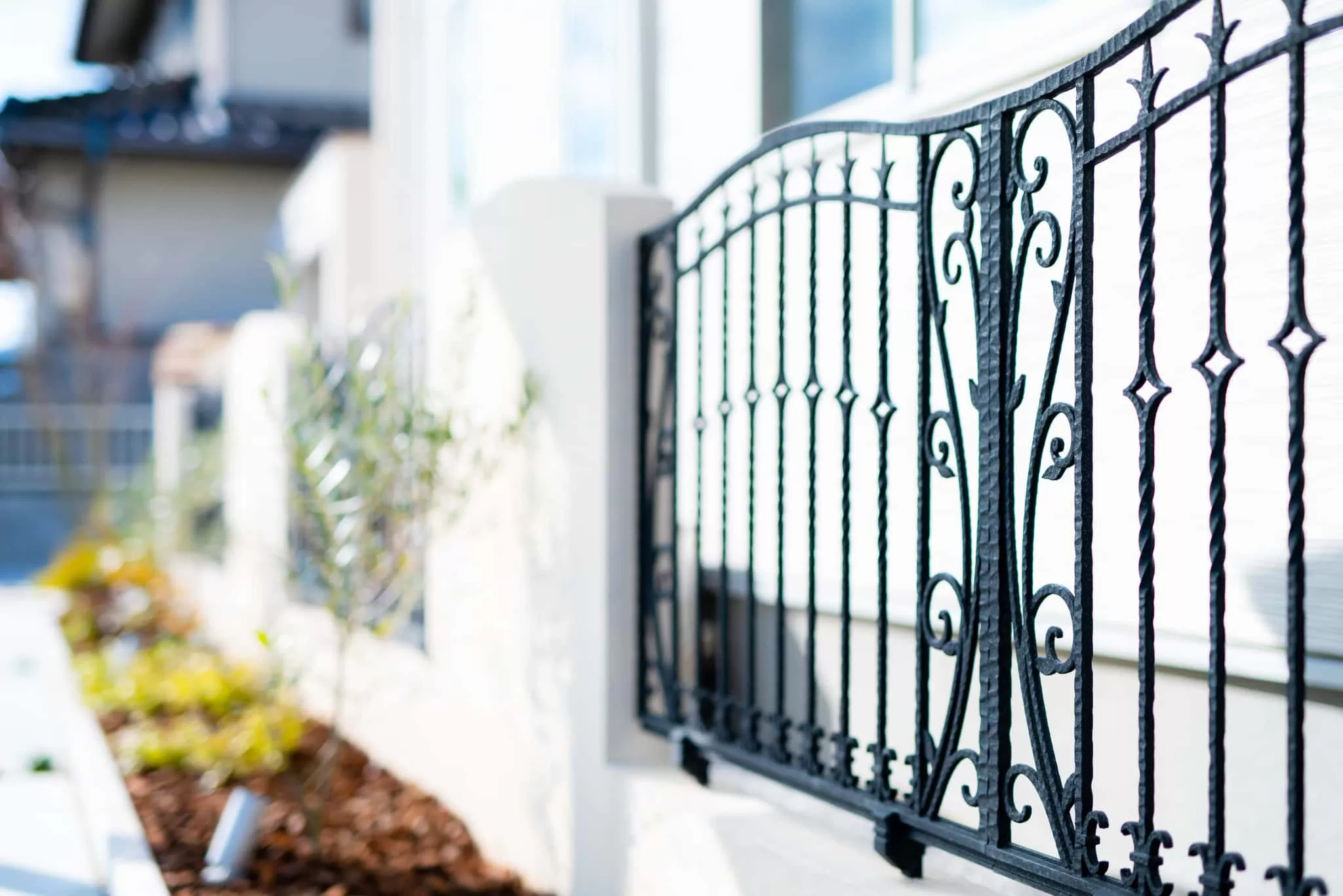 アイアン調の門扉とフェンスは、クラシカルなデザインで建物外観が引き立つアイテムに。格子が視界を遮らないため、圧迫感を感じにくく開放感があります。