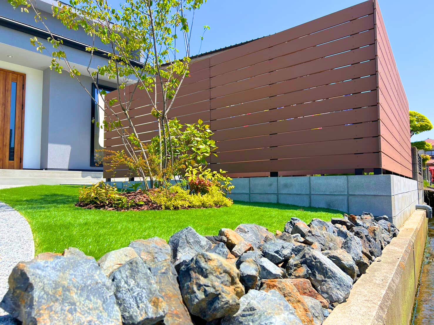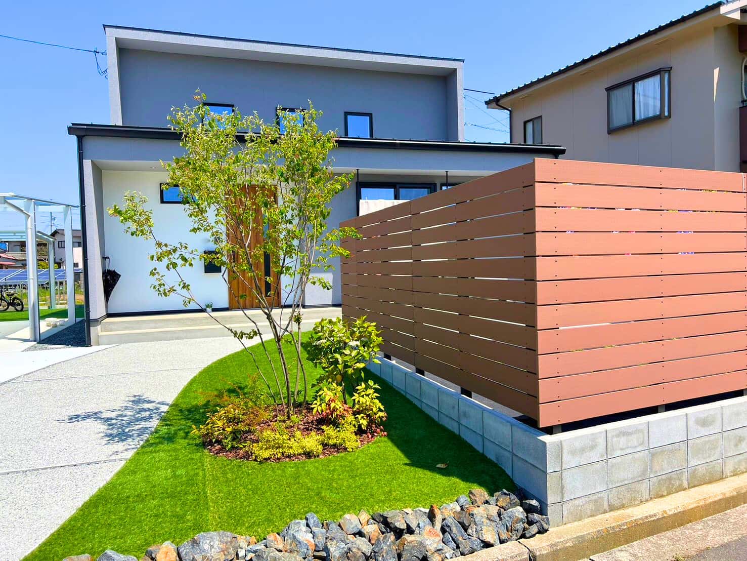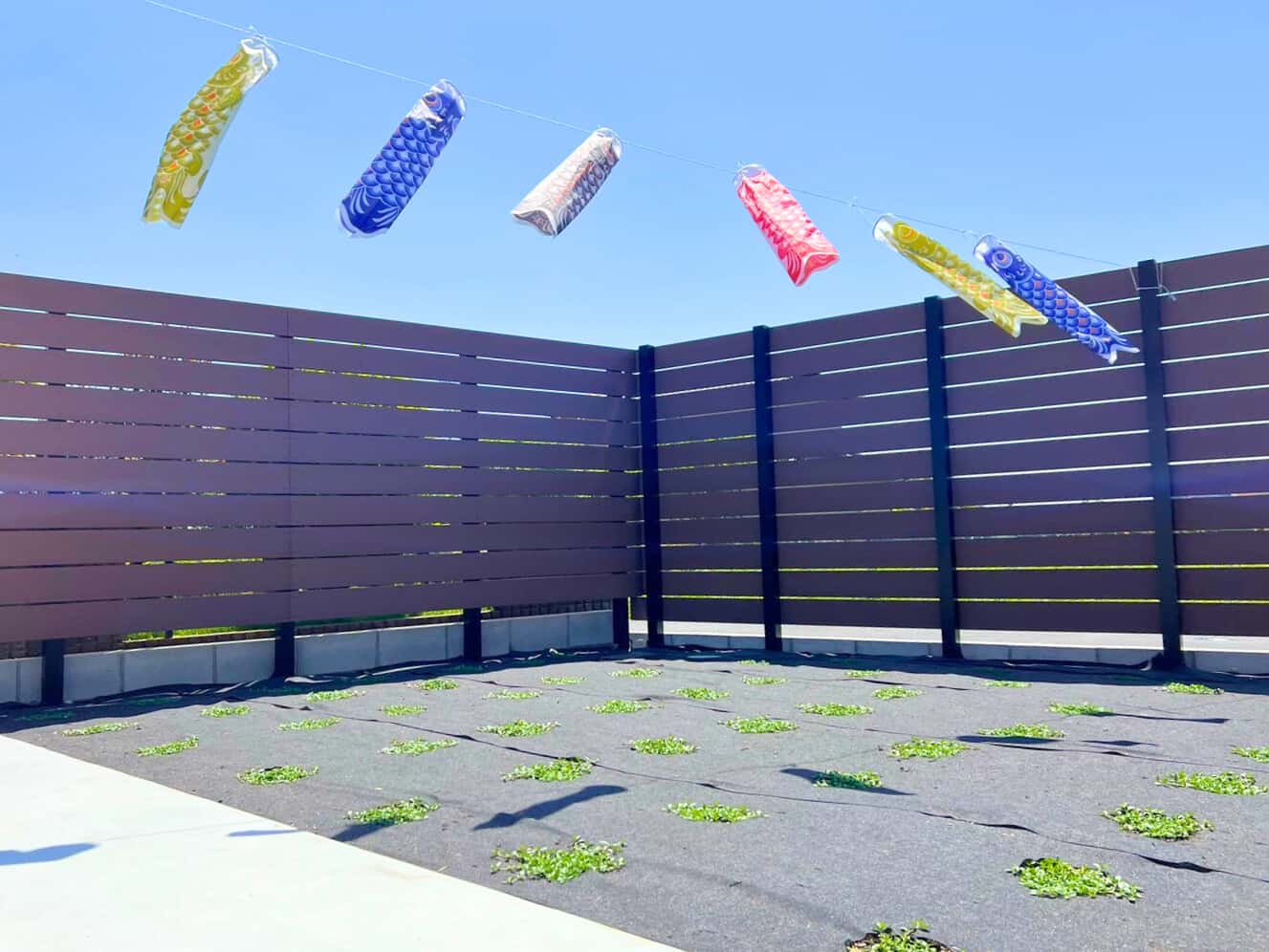 目隠しフェンスの設置により、プライベートなスペースが確保され、夏場には子供たちがプール遊びを楽しむことができます。