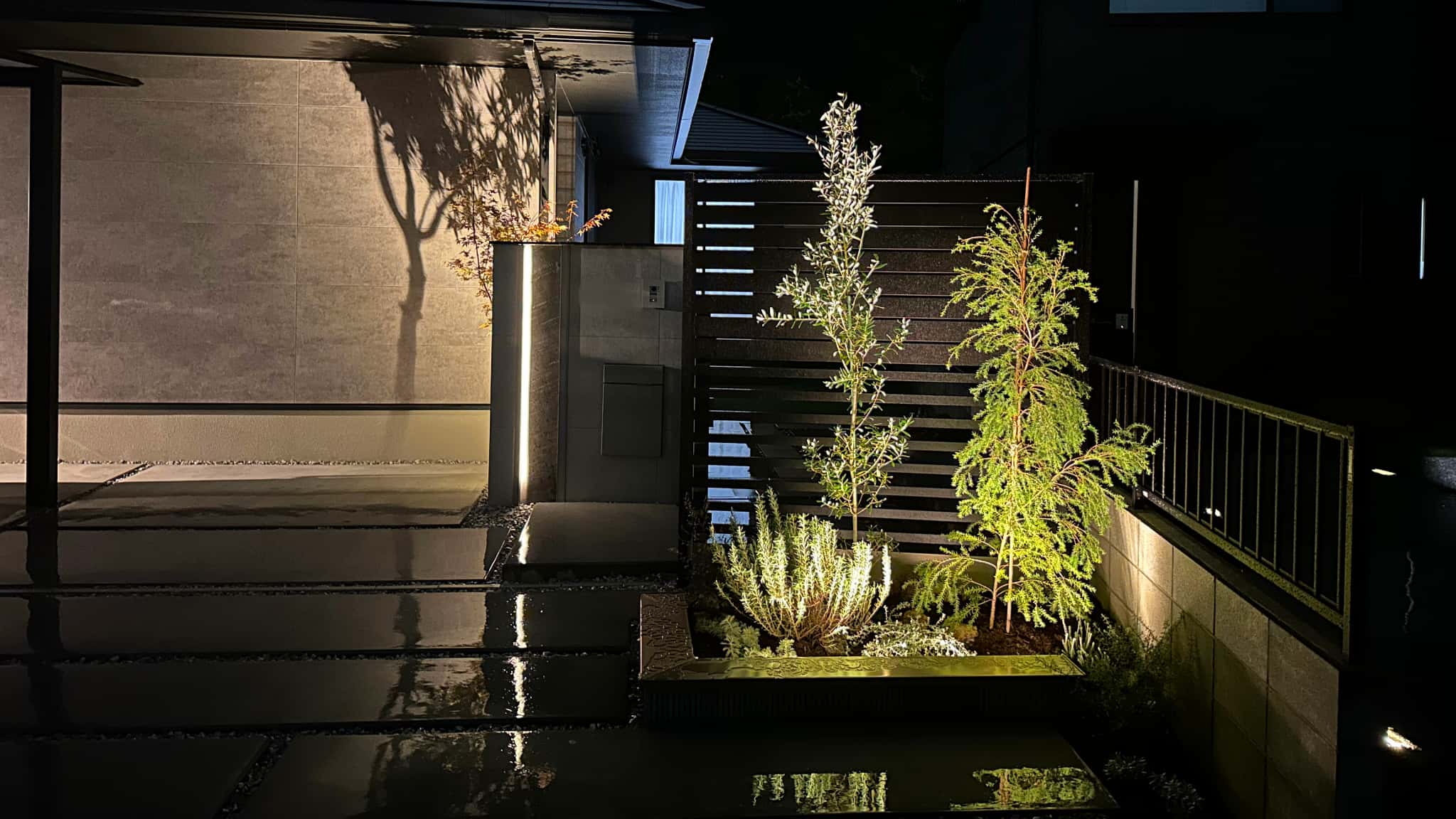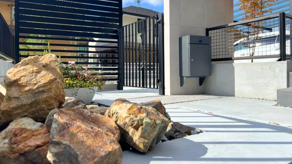 高級感、上品さ、そして快適さを兼ね備えたこちらの外構には、一つひとつの要素にこだわりが込められています。