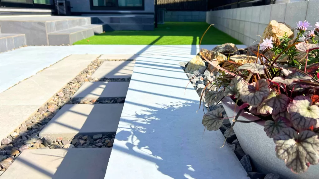 さらにデザイン性を備えた足元のコンクリート平板がモダンな美しさを表現し、歩くたびに特別感を味わえます。