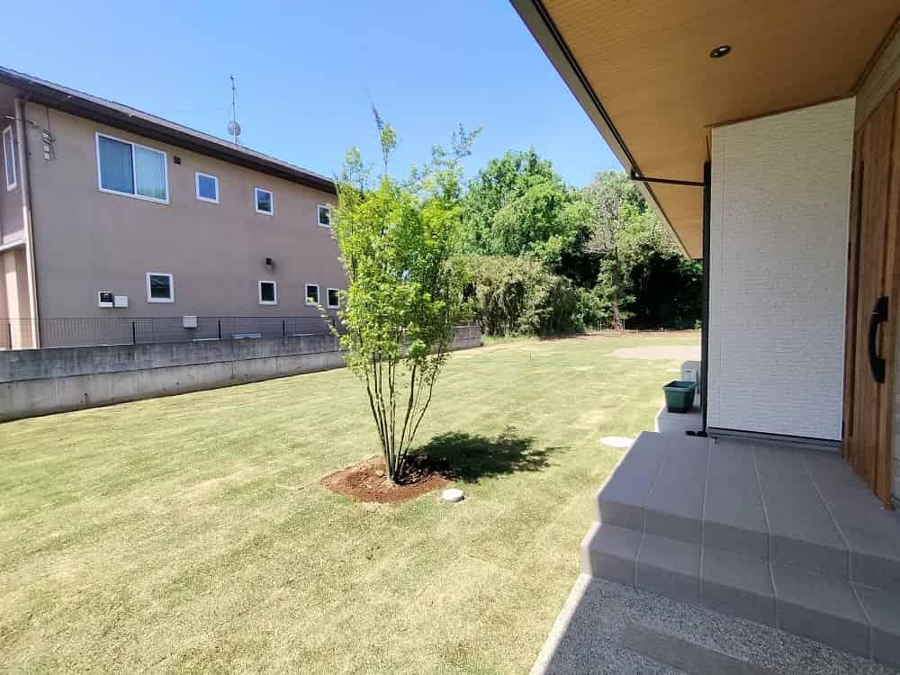 お庭は施主様が天然芝を施工されるため、弊社は整地のみを担当。