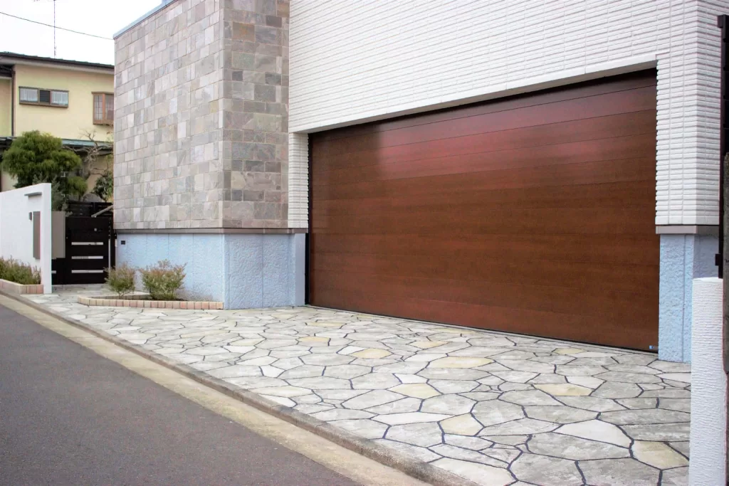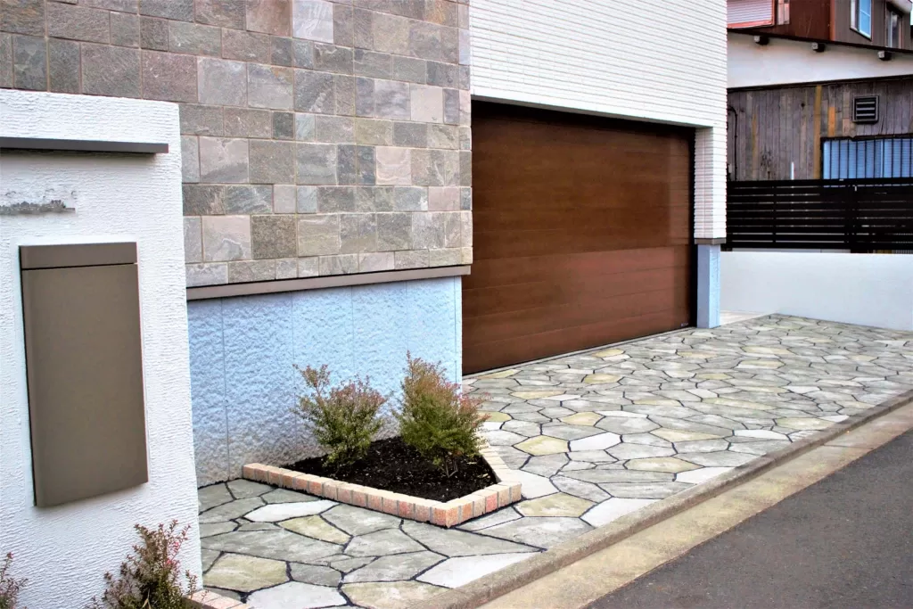 そこには、ローラーストーンと呼ばれる特別な石材が35平方メートルも使われていて、駐車場から同じデザインでつながっています。
