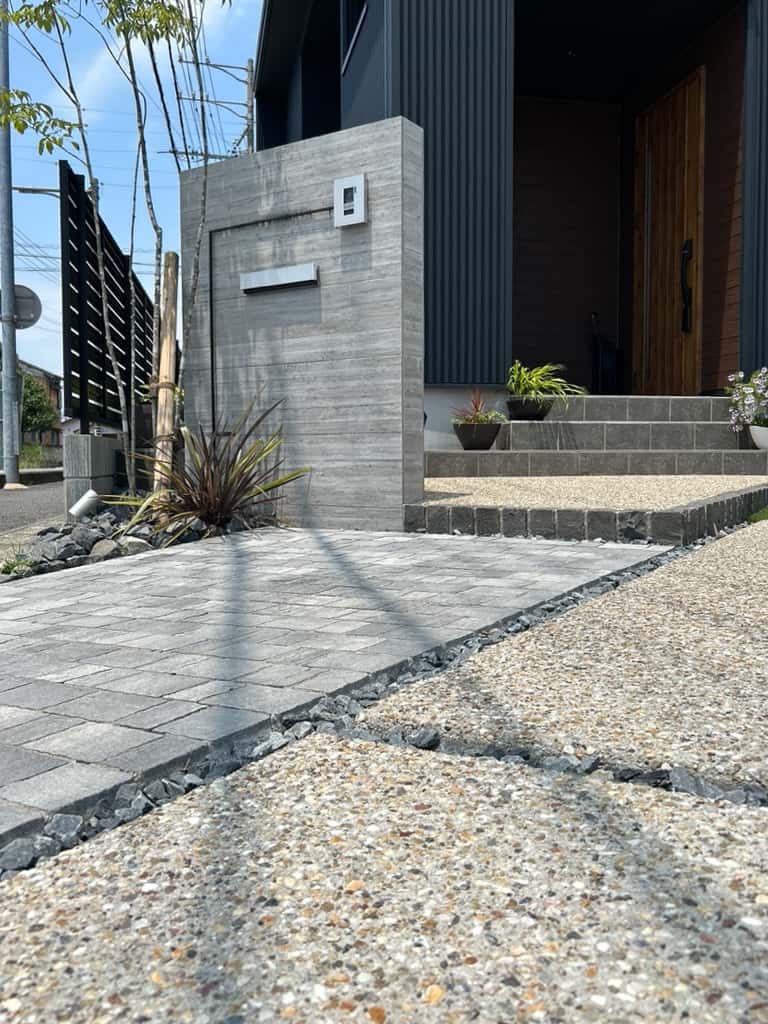 手掛けたのは、家族を迎え入れるような・・・をテーマに、外構デザイン。