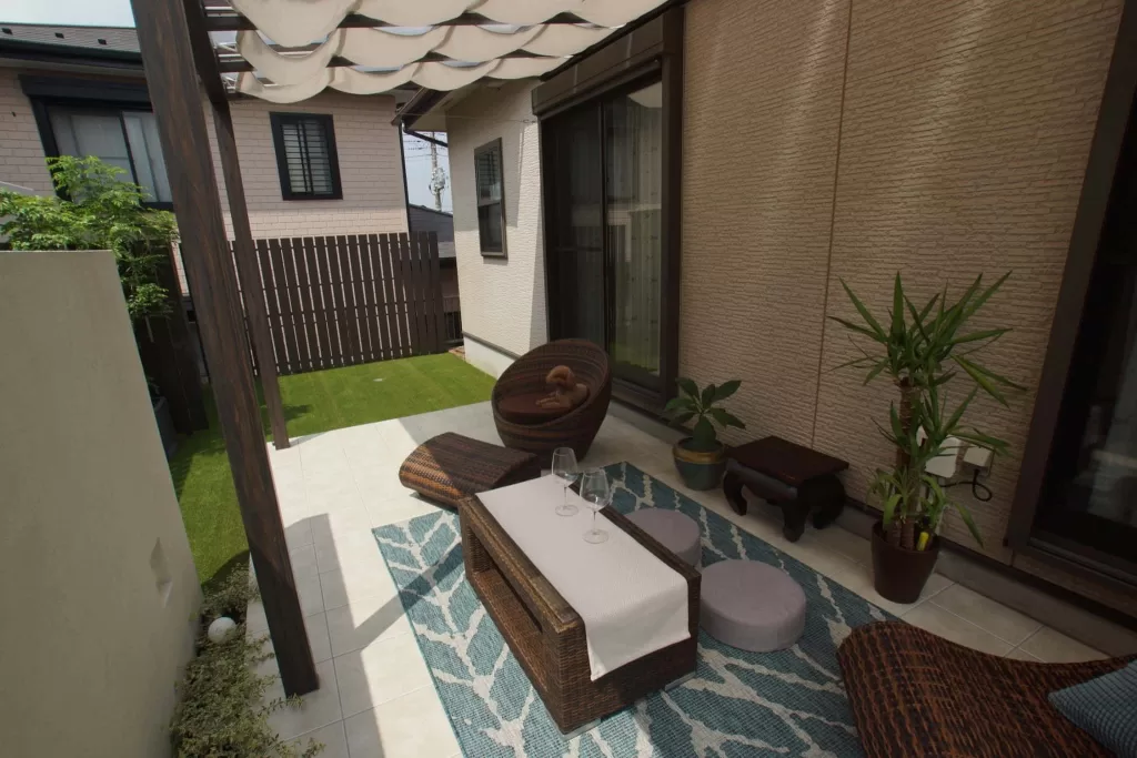 目隠しフェンス(F&F)で周りの視界を気にせず、ゆったりとしたスペースができました。