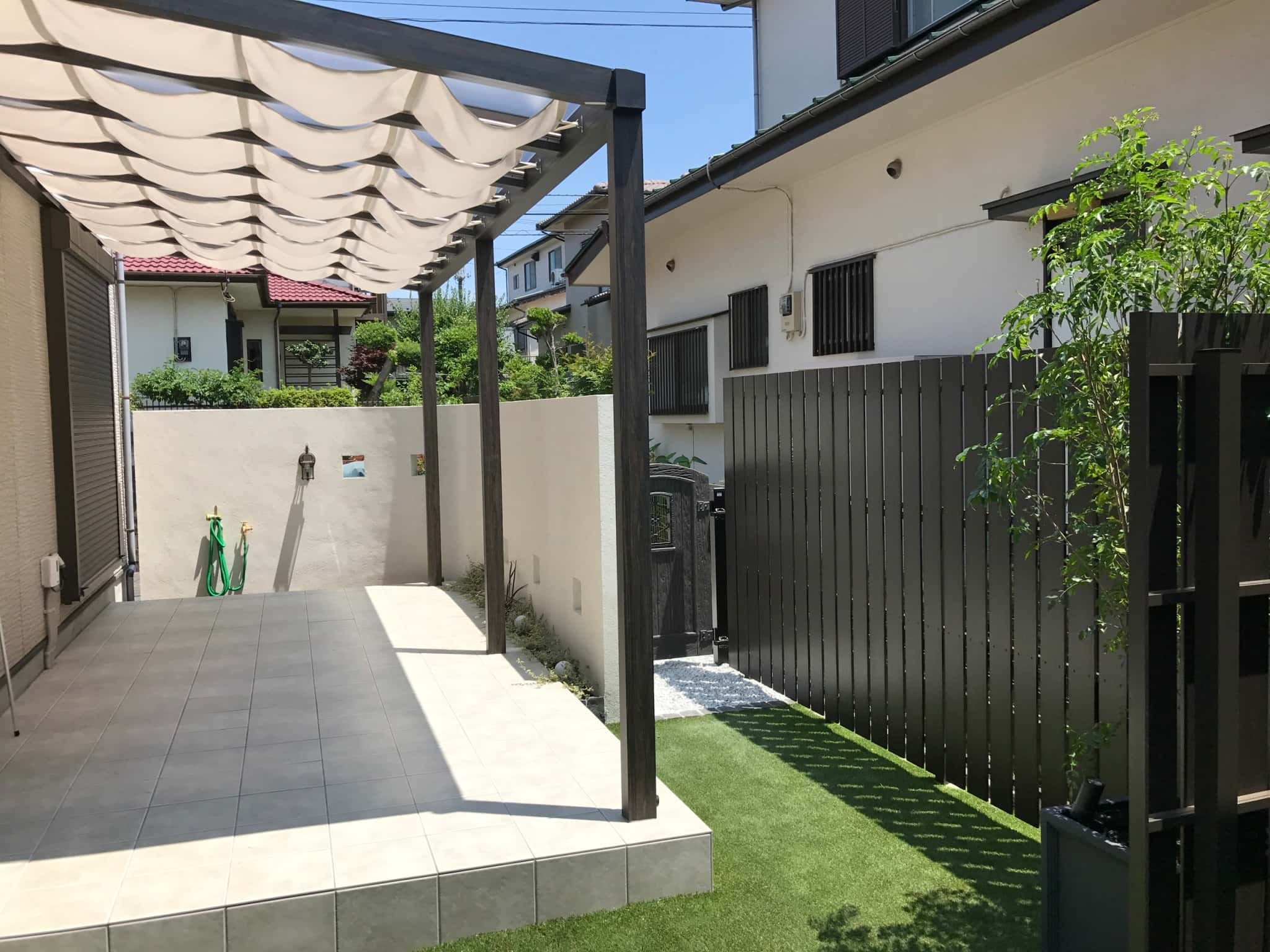 目隠しフェンス(F&F)で周りの視界を気にせず、ゆったりとしたスペースができました。