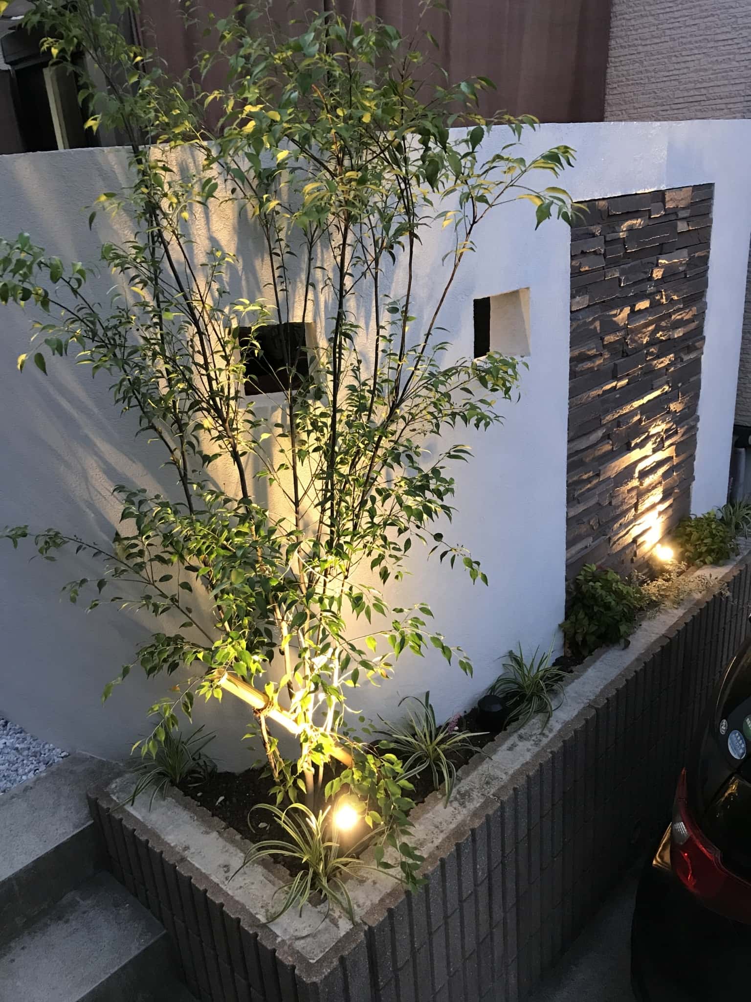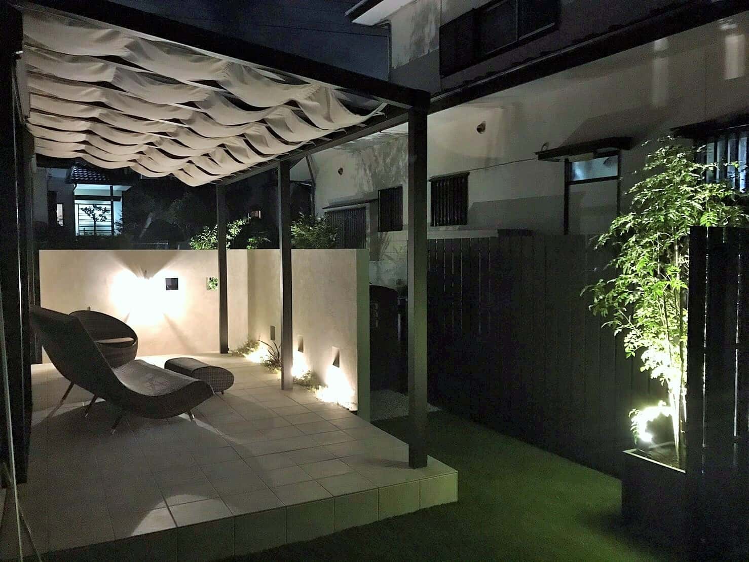夜の照明にもこだわりました!また違う印象です。