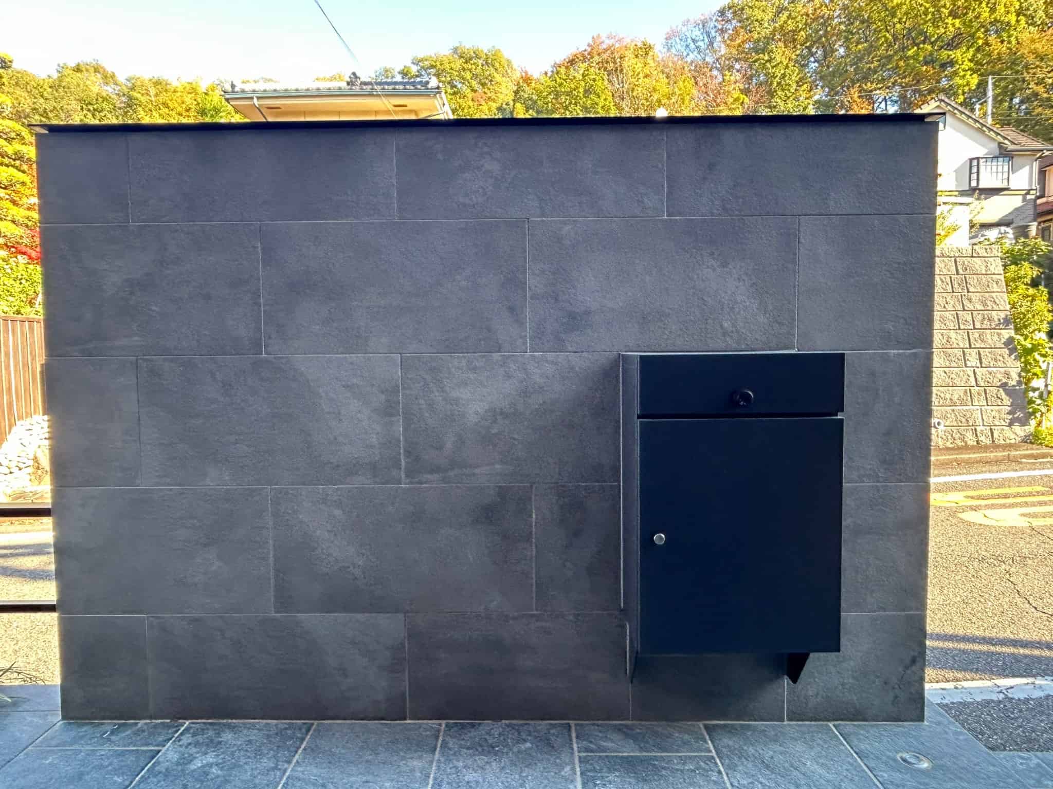 門柱はグレーを基調にブラックのアクセントを加え、外観との一体感を演出。