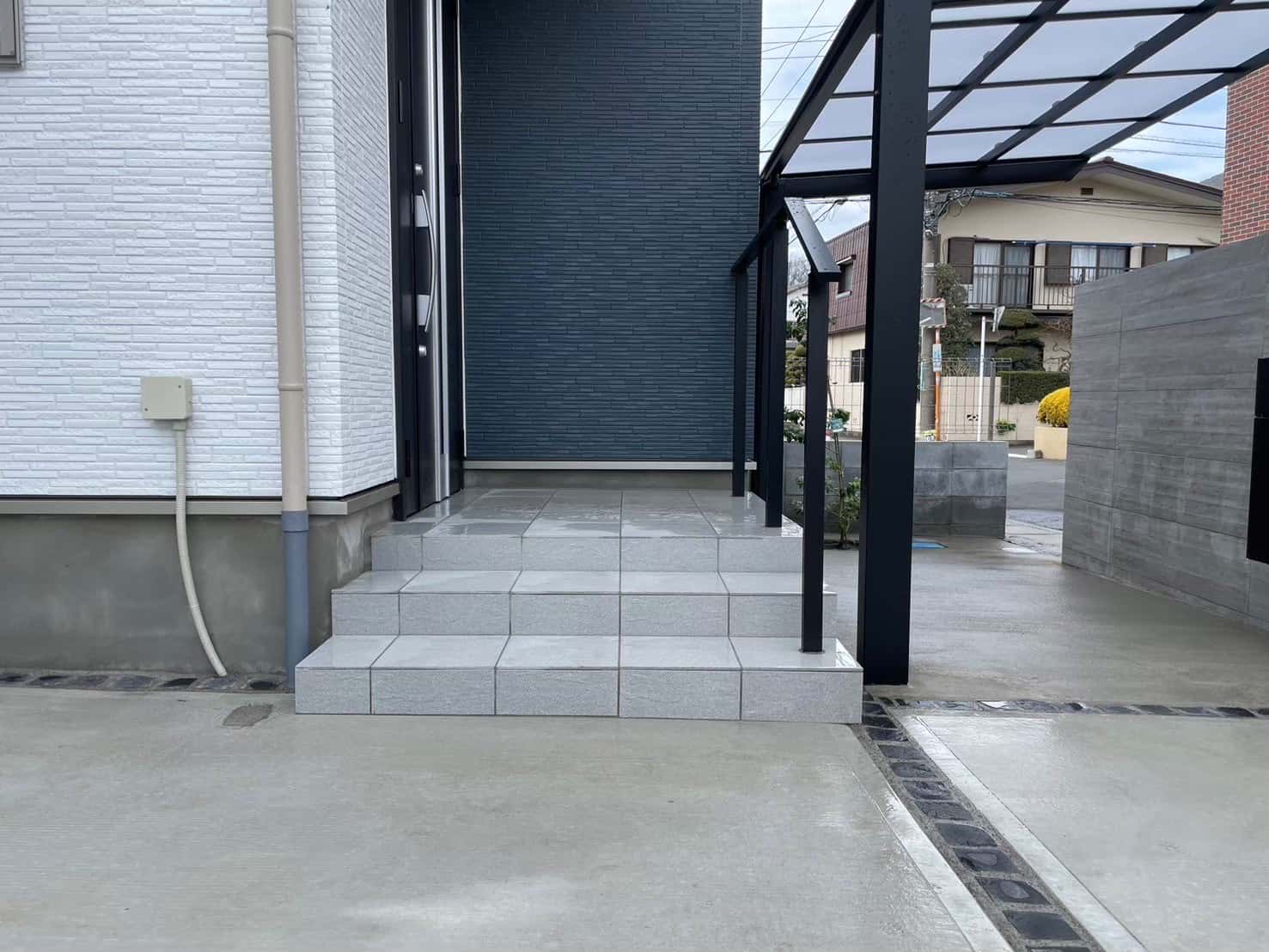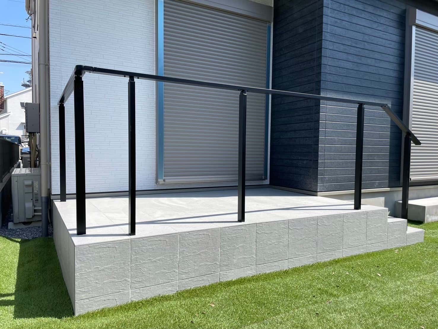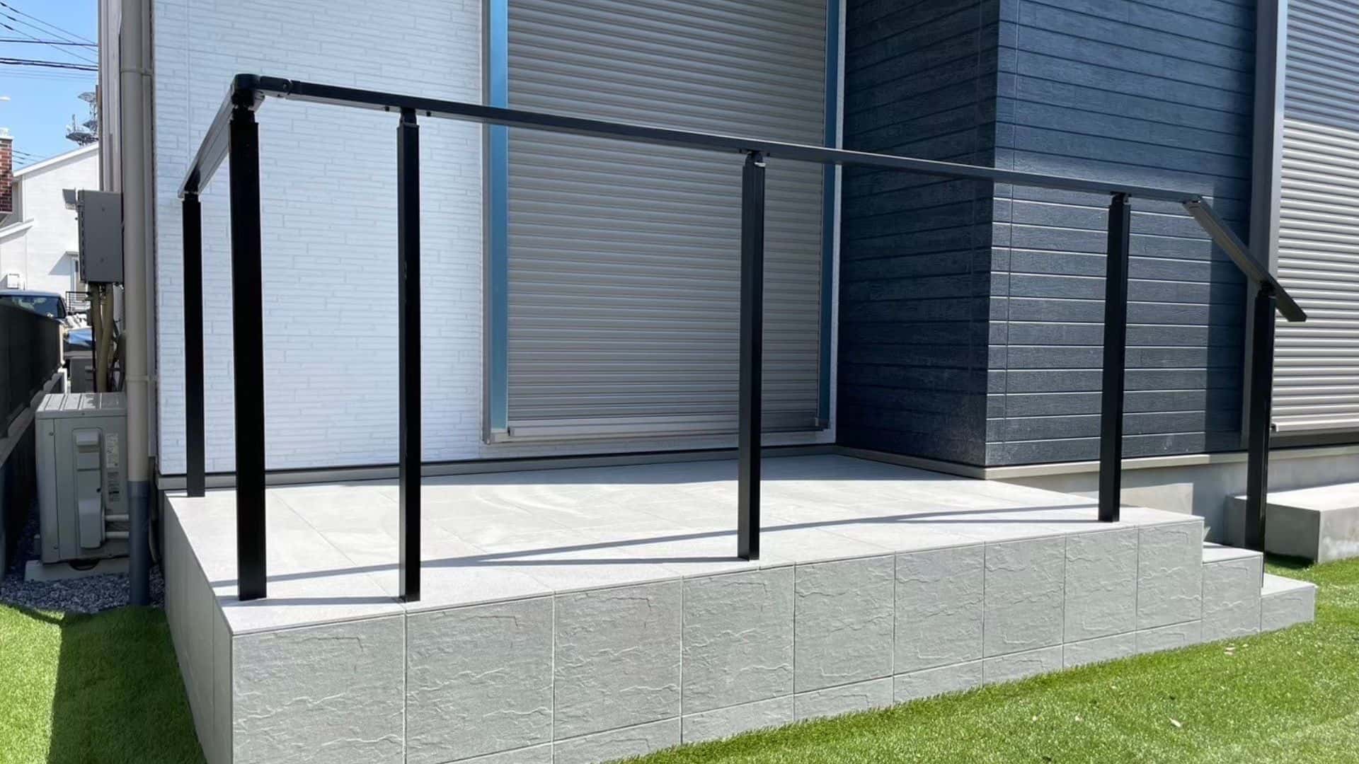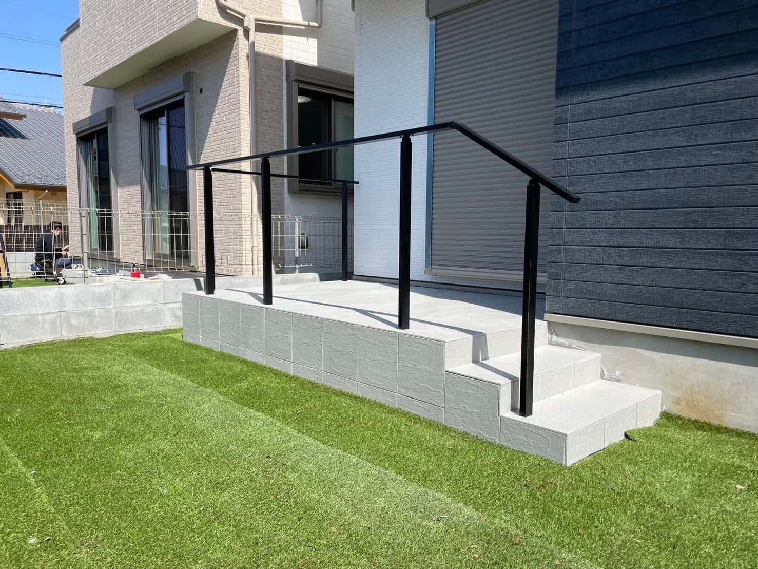 お庭部分にはタイルデッキを作りました。階段も作りとても使いやすくなりました。