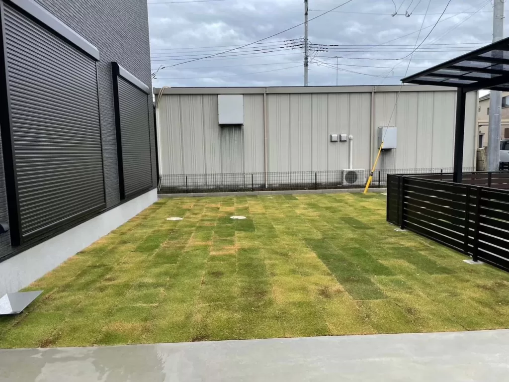 お庭部分には天然芝を敷きました。