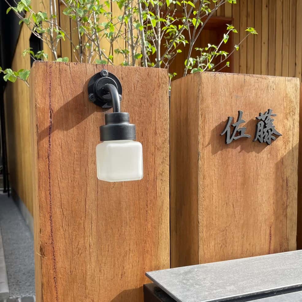 植物の緑と赤のカラーが足元を彩り、夜になると、照明がほのかに表札を照らしてくれます。